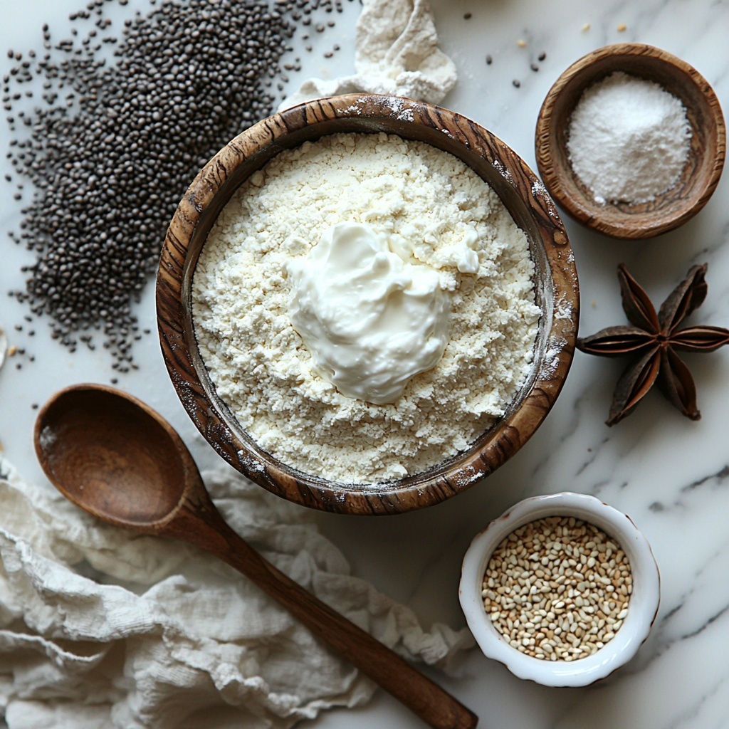 These ingredients are not only straightforward but also work in harmony to create the perfect bagel dough. Each one plays a crucial role—flour forms the structure, Greek yogurt adds moisture and tanginess, and baking powder acts as a gentle leavening agent to give just the right rise and texture.