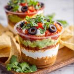 If you’re looking for a fun, colorful, and absolutely crowd-pleasing appetizer, look no further than this 7 Layer Dip Cups Recipe. Perfectly portioned and packed with all the layers you love—creamy refried beans, zesty guacamole, cool sour cream, tangy salsa, melty cheese, briny olives, and fresh tomatoes—these individual cups bring all the party vibes without the mess. The ease of layering each vibrant ingredient in a cup makes snacking both neat and super satisfying. Whether you’re hosting game day, a casual get-together, or just craving a flavorful snack, this recipe is a winner that’s guaranteed to impress and delight.