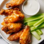 - Toss Wings in Sauce and Serve: Once the wings are done, transfer them to the bowl with the buffalo sauce and toss until they are fully coated. Serve immediately with blue cheese or ranch dressing and celery sticks on the side to complement the spicy wings.