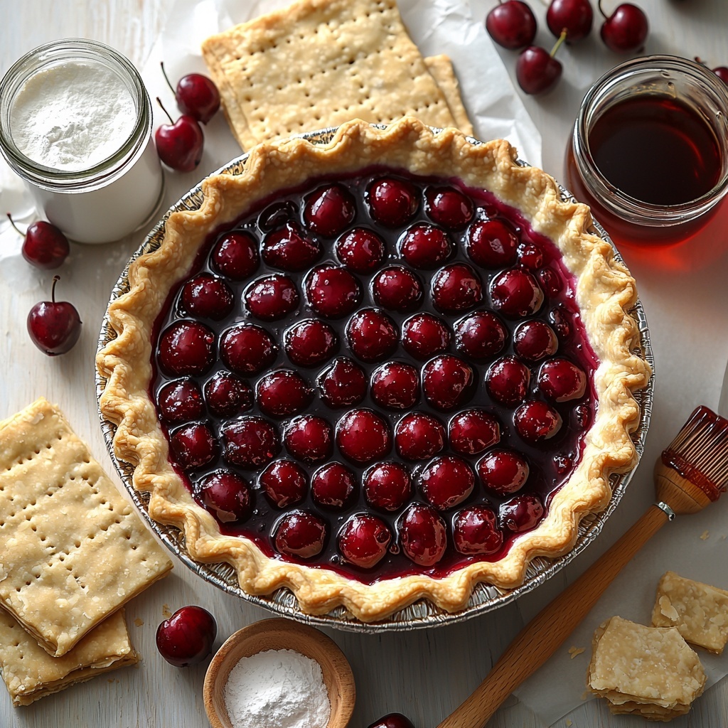 A sprinkle of powdered sugar or freshly chopped mint leaves can add a delicate touch of elegance, while a few fresh cherries placed on the side echo the pie’s vibrant filling and give a fresh contrast to the baked sweetness.