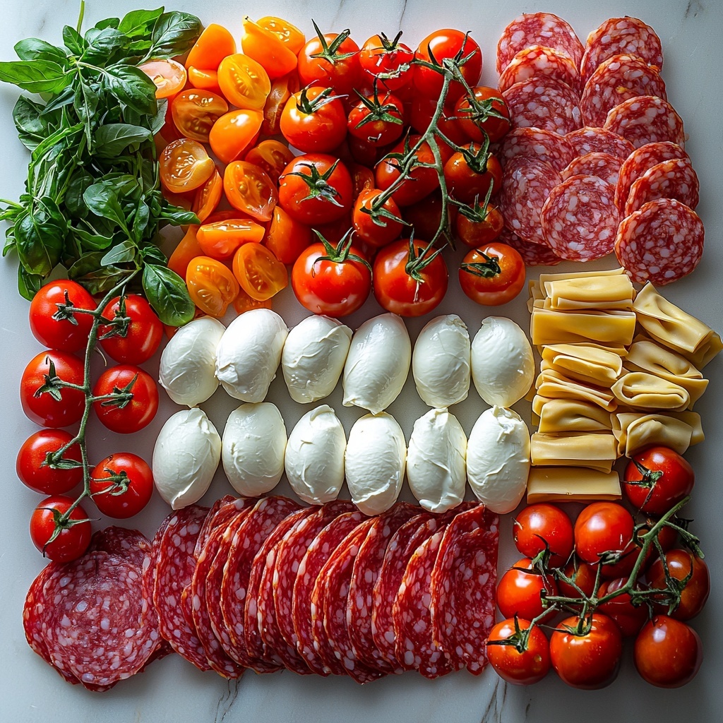 - Fresh mozzarella pearls (12 oz): Creamy cheese bites that contrast beautifully with the meats and veggies.