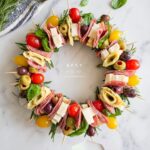 This Antipasto Wreath Holiday Appetizer is a festive and visually stunning way to serve a variety of Italian-inspired bites. Featuring a colorful mix of charcuterie meats, fresh mozzarella, cherry tomatoes, artichoke hearts, olives, cheese tortellini, and fresh herbs on skewers arranged like a wreath, it’s perfect for holiday gatherings or any celebratory occasion. Easy to assemble and no cooking required, this appetizer offers a delicious balance of flavors and textures in a beautiful presentation.