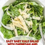 A fresh and vibrant Baby Kale Salad dressed with a tangy Dijon and white wine vinegar dressing, enhanced by the sharpness of shallots and the savory depth of parmesan cheese. This easy and quick no-cook salad is perfect as a light lunch or a healthy side dish.