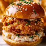 Spread sauce just before serving and keep buns separate until assembly. Use paper towels to drain fried chicken well, and serve immediately for the crispiest experience.
