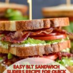 These BLT Sandwich Sliders are a perfect bite-sized take on the classic bacon, lettuce, and tomato sandwich. Featuring crispy thick-cut bacon, fresh Roma tomatoes, and crisp green leaf lettuce, all layered between toasted wheat bread spread with creamy mayonnaise, these sliders make an ideal appetizer or snack for any casual gathering.