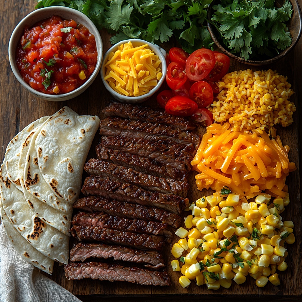 - Prepare Tortillas: Take one flour tortilla and place a small scoop of the cooked steak strips and scrambled eggs in the center. Sprinkle about 1/4 cup of shredded Mexican blend cheese on top. Fold the tortilla by folding it once over the filling, then tuck in the ends and continue rolling to create a neat burrito shape.