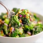 This salad is best enjoyed fresh and does not freeze well. The mayonnaise dressing and broccoli texture change significantly after freezing and thawing, so it’s not recommended to freeze this original combination.