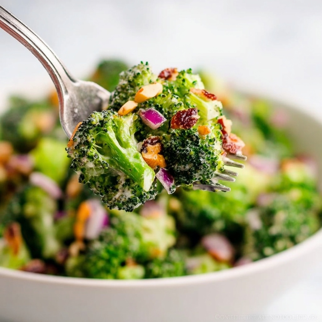 This refreshing Broccoli Salad recipe combines crisp raw broccoli florets with sweet dried cranberries, crunchy sunflower seeds, and savory bacon bits, all tossed in a tangy and creamy apple cider vinaigrette. Perfect as a side dish for gatherings or a light lunch, it requires no cooking and comes together quickly in under 15 minutes.