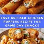 Brighten up your Buffalo Chicken Poppers: Spicy, Cheesy, and Crowd-Pleasing Bites Recipe with chopped green onions for a subtle crunch and mild onion flavor, or go classic with crumbled blue cheese to add a sharp, creamy contrast. These garnishes not only make the dish look more inviting but also layer in fresh bursts of texture and taste.