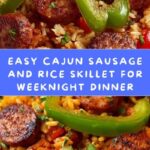 This flavorful Cajun Sausage and Rice Skillet recipe combines spicy Andouille sausage with aromatic spices, fire roasted tomatoes, and tender long grain white rice, all cooked together in one skillet for a hearty and satisfying meal perfect for weeknight dinners.