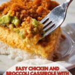 A comforting Chicken and Broccoli Stuff casserole featuring tender broccoli, shredded chicken, and a creamy cheesy sauce topped with a crispy buttery panko breadcrumb crust. Baked to bubbly perfection, it’s served over hot rice making it a hearty family-friendly meal.