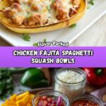 These Chicken Fajita Spaghetti Squash Bowls are a flavorful, low-carb twist on classic fajitas, served inside roasted spaghetti squash halves. Tender, cumin and chili spiced chicken cubes pair perfectly with caramelized bell peppers, onions, and a touch of salsa, topped with melted cheddar cheese. This dish offers a deliciously healthy way to enjoy fajita flavors with a nutritious vegetable base.