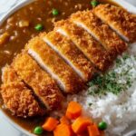 Chicken Katsu Curry is a comforting Japanese-inspired dish featuring crispy breaded chicken breasts fried to golden perfection and served with a rich, flavorful curry sauce over steamed white rice. This recipe combines the satisfying crunch of chicken katsu with a mildly spiced curry, enhanced by ginger, garlic, and a hint of sweetness, creating a hearty meal ideal for family dinners.