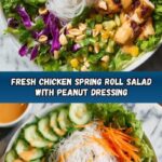 In a large bowl, combine all your prepared vegetables, cooled rice noodles, cooked chicken, fresh mint, cilantro, and chopped peanuts. Drizzle the luscious peanut dressing evenly over the salad, then toss gently to keep everything light and fresh while ensuring every bite is bursting with flavor. Your Chicken Spring Roll Salad Recipe is now ready to enjoy!
