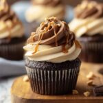Delight in these rich and moist Chocolate Peanut Butter Cupcakes, featuring a perfectly balanced chocolate base topped with a creamy peanut butter frosting. Garnished optionally with chopped mini Reese’s peanut butter cups, these cupcakes are a decadent treat perfect for any occasion.