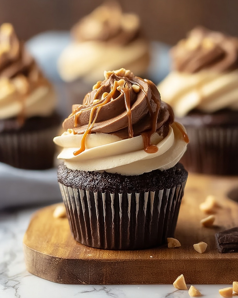 Sprinkling chopped Reese’s peanut butter cups adds a playful visual and textural contrast that makes the cupcakes irresistible. You could also try a dusting of cocoa powder or a few mini chocolate chips to elevate the presentation further.
