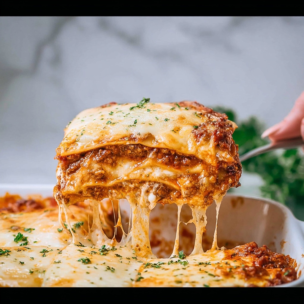 A sprinkle of freshly chopped parsley brightens the rich lasagna wonderfully, adding a fresh burst of color and a delicate herbal touch that complements the hearty sauce beautifully. For an extra indulgent finish, a light dusting of additional Parmesan cheese right before serving never hurts!