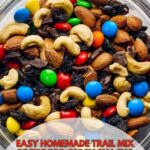 A simple and delicious Trail Mix recipe combining roasted nuts, raisins, and colorful M&M’s. Perfect for a quick snack on the go or a healthy energy boost during outdoor activities.