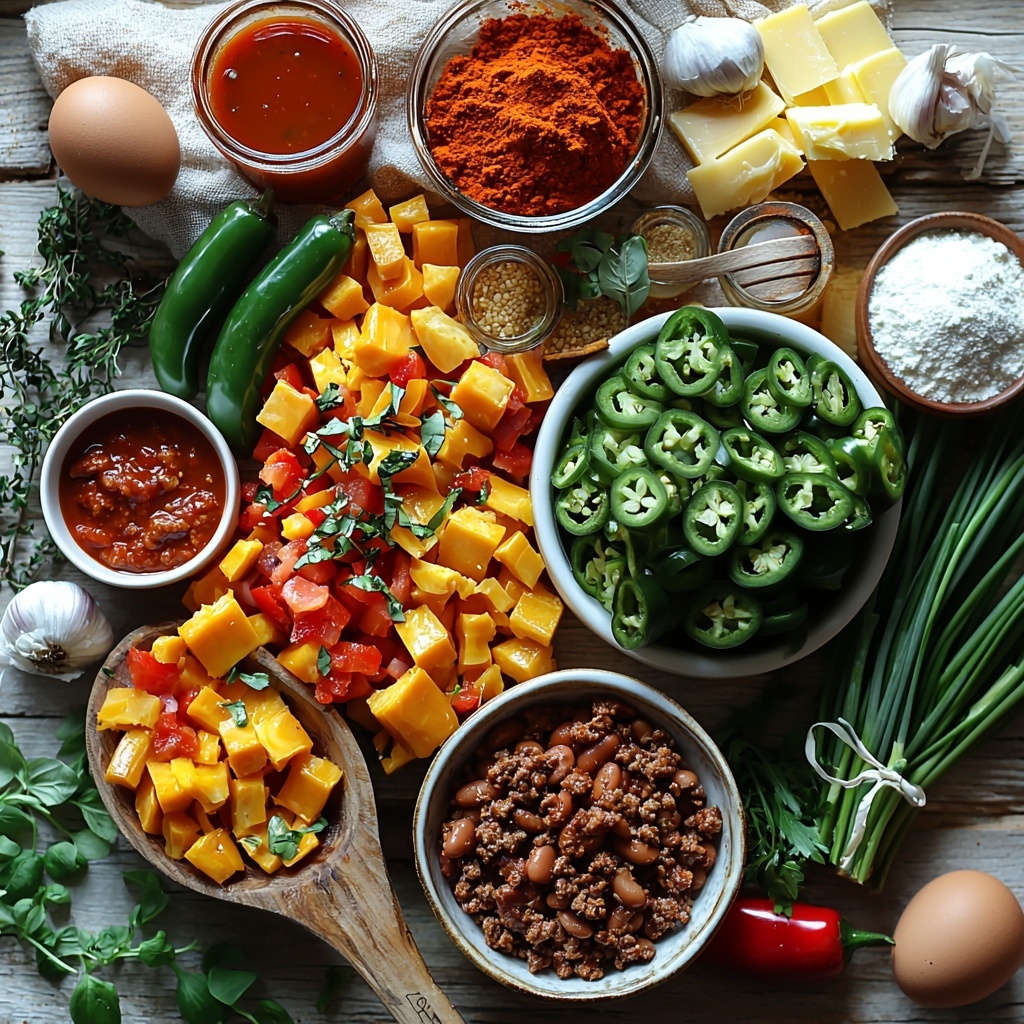 Getting your hands on the right ingredients is half the fun and success of this recipe. Each component plays a crucial role—from the savory depth of the chili spices to the tender, moist cornbread topping that finishes the dish with a cheesy, slightly spicy flourish. These simple but essential ingredients come together seamlessly to create a rich and satisfying meal.