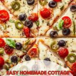 A delicious and easy-to-make Cottage Cheese Pizza featuring a homemade dough with cottage cheese and flour, topped with tomato sauce, mozzarella, olives, cherry tomatoes, and fresh basil. This recipe offers a lighter alternative to traditional pizza dough and is perfect for a quick homemade meal.