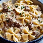 A rich and comforting Creamy Beef and Bowtie Pasta recipe that combines flavorful ground beef with a luscious cheese sauce, perfectly coating tender bowtie pasta for an easy and satisfying weeknight dinner.