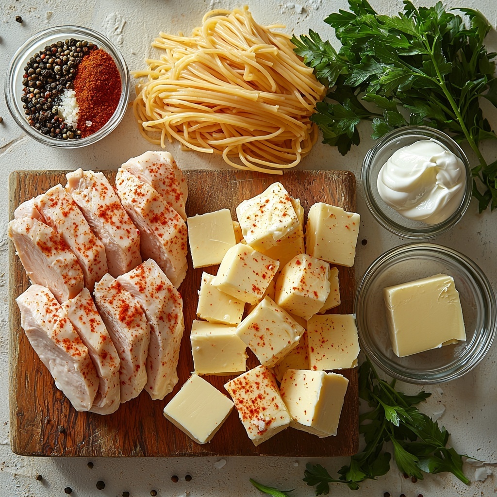 This Creamy Velveeta Chicken Linguine with Mozzarella Garlic Sauce is a rich and comforting pasta dish combining tender seared chicken breasts with a luscious garlic cream sauce made from Velveeta, mozzarella, and heavy cream. Perfectly cooked linguine pasta is tossed in the cheesy sauce and topped with sliced seasoned chicken and fresh parsley for a satisfying weeknight dinner that comes together quickly.