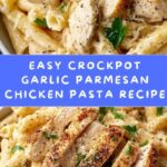 This Crockpot Garlic Parmesan Chicken Pasta is a creamy, comforting meal that’s incredibly easy to prepare. Tender chicken breasts cook slowly with pasta, a blend of creamy cheeses, garlic, and fragrant herbs, resulting in a rich and delicious dish perfect for busy weeknights or cozy dinners.