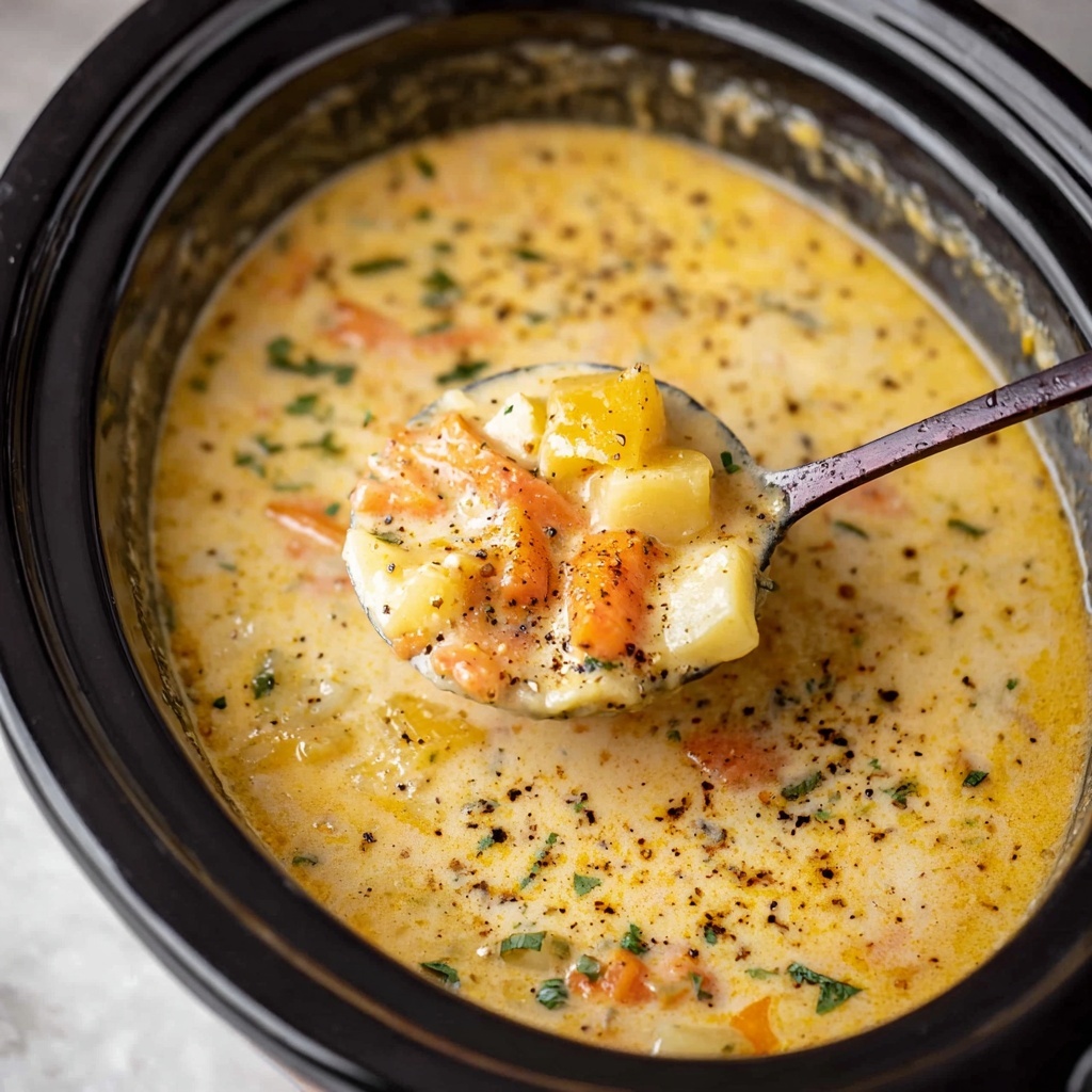 - Mash Potatoes: Using a potato masher, gently mash some of the cooked vegetables and potatoes in the slow cooker about 3-4 times to create a slightly creamy texture while still leaving chunks for a hearty feel.