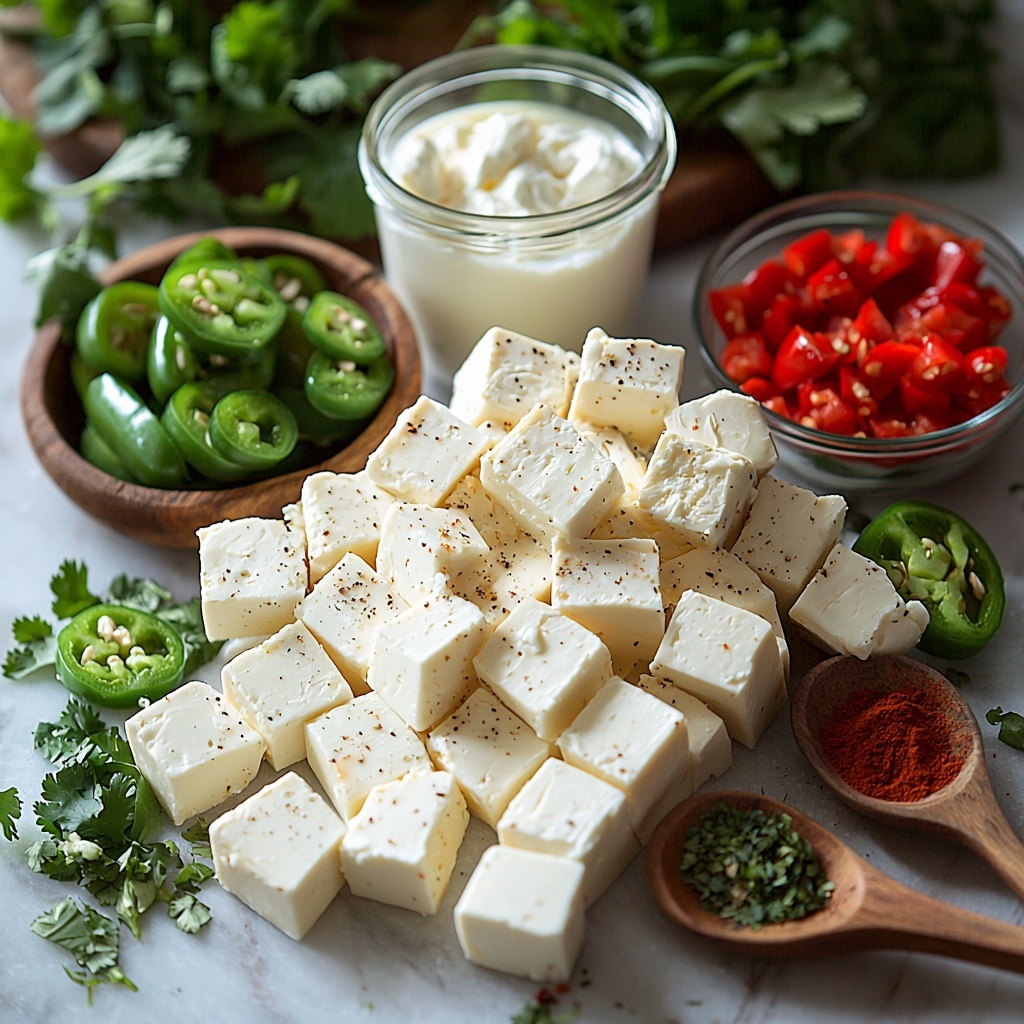 This Crockpot White Queso Dip Recipe thrives on simple yet carefully chosen ingredients that each bring something special to the party. From the velvety texture of white American cheese to the subtle creaminess of cream cheese, every item is essential to creating that perfect smooth and tangy flavor that makes this dip unforgettable.
