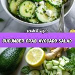 This refreshing Cucumber Crab Avocado Salad combines crisp cucumber slices, tender lump crab meat, creamy avocado, and fresh mint, all tossed in a light, tangy dressing. Perfect as a light lunch or an elegant appetizer, this no-cook dish requires minimal prep and delivers maximum flavor and texture contrast.