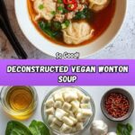 Serve this soul-warming Deconstructed Vegan Wonton Soup Recipe hot in deep bowls. Top each portion with sliced green onions and a drizzle of chili oil, giving a fresh pop of color and just the right amount of heat to awaken your palate.