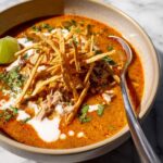 This Easy Chicken Tortilla Soup is a flavorful, comforting dish perfect for weeknight dinners. Made with tender chicken thighs, fire-roasted tomatoes, black beans, corn, and a blend of smoky spices, this soup offers a delightful Tex-Mex twist. Topped with crispy tortilla strips, cheese, avocado, and more, it’s an easy recipe that warms you up and satisfies your cravings.