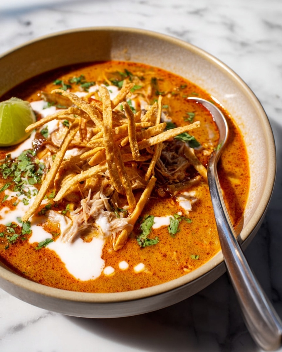 The toppings are where you can really make each bowl your own. Classic tortilla strips or crushed chips add a satisfying crunch, while shredded cheese melts into the warm soup for extra indulgence. Fresh cilantro brings herbaceous brightness, sour cream adds creaminess, and ripe avocado slices lend buttery richness. These garnishes turn a simple soup into a festive and vibrant meal.