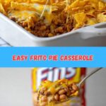 This Easy Frito Pie is a deliciously cheesy and hearty casserole that combines seasoned ground beef, beans, tangy enchilada sauce, and crunchy Fritos corn chips. Baked to perfection and topped with melted Mexican blend cheese, this crowd-pleasing dish is perfect for family dinners or casual gatherings. Garnished with green onions, sour cream, and guacamole, it offers layers of flavor and texture in every bite.