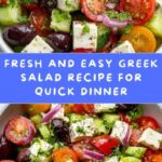 This easy Greek salad recipe is a fresh and vibrant Mediterranean dish featuring ripe tomatoes, crisp cucumber, sweet bell pepper, tangy feta cheese, and briny Kalamata olives. Tossed in a bright lemon and oregano dressing with high-quality extra-virgin olive oil, this salad is perfect as a light meal or a colorful side dish.