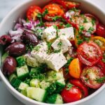 If you’re looking for a refreshing, vibrant dish that bursts with Mediterranean flavors, you’ve got to try this Easy Greek Salad Recipe. It’s a beautiful harmony of juicy tomatoes, crisp cucumbers, sweet bell peppers, and briny Kalamata olives, all brought together with creamy feta cheese and a zesty lemon-oregano dressing. This salad isn’t just a side; it’s a celebration of fresh ingredients that feels both light and incredibly satisfying. Whether you’re whipping it up for a quick lunch or bringing it to a summer gathering, this recipe delivers a delightful taste of Greece in just minutes.