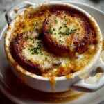 Ladle the hot soup into oven-safe bowls or crocks, floating one or two Gruyère toasts on top. Place the bowls on a baking sheet and slide them under the broiler just long enough to brown the cheese even more if desired, creating a luscious, bubbly top that’s both visually stunning and deliciously satisfying.