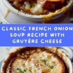 This classic French Onion Soup recipe features deeply caramelized sweet onions simmered in a rich beef broth, topped with toasted baguette slices and melted Gruyère cheese for a comforting, savory dish perfect for any occasion.
