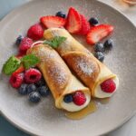 - Serve: Plate the roll-ups warm, drizzle with maple syrup, and garnish with extra fresh berries if desired. Enjoy immediately for best flavor and texture.