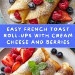 Delicious French Toast Roll-Ups featuring soft white sandwich bread filled with creamy cream cheese and fresh berries, dipped in a classic egg custard, fried to golden perfection, and coated in a cinnamon-sugar mixture. A fun and flavorful breakfast treat perfect for all ages.