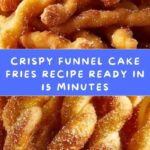 Crispy and sweet funnel cake fries, perfect for a fun and delicious treat. These deep-fried strips of funnel cake batter are dusted with powdered sugar, offering a delightful twist on the classic fairground favorite.