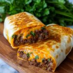 These Garlic Butter Beef Cheeseburger Rollups combine seasoned ground beef, melted cheddar and mozzarella cheeses, and rich garlic butter, all wrapped in soft flour tortillas and baked to golden perfection. Perfect as a savory appetizer or a fun dinner, these rollups deliver all the flavors of a cheeseburger in a convenient handheld format.