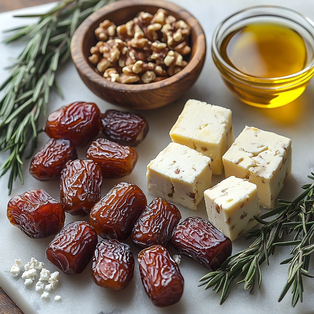 • 250 g goat cheese: The creamy, tangy base that melts beautifully inside each date.