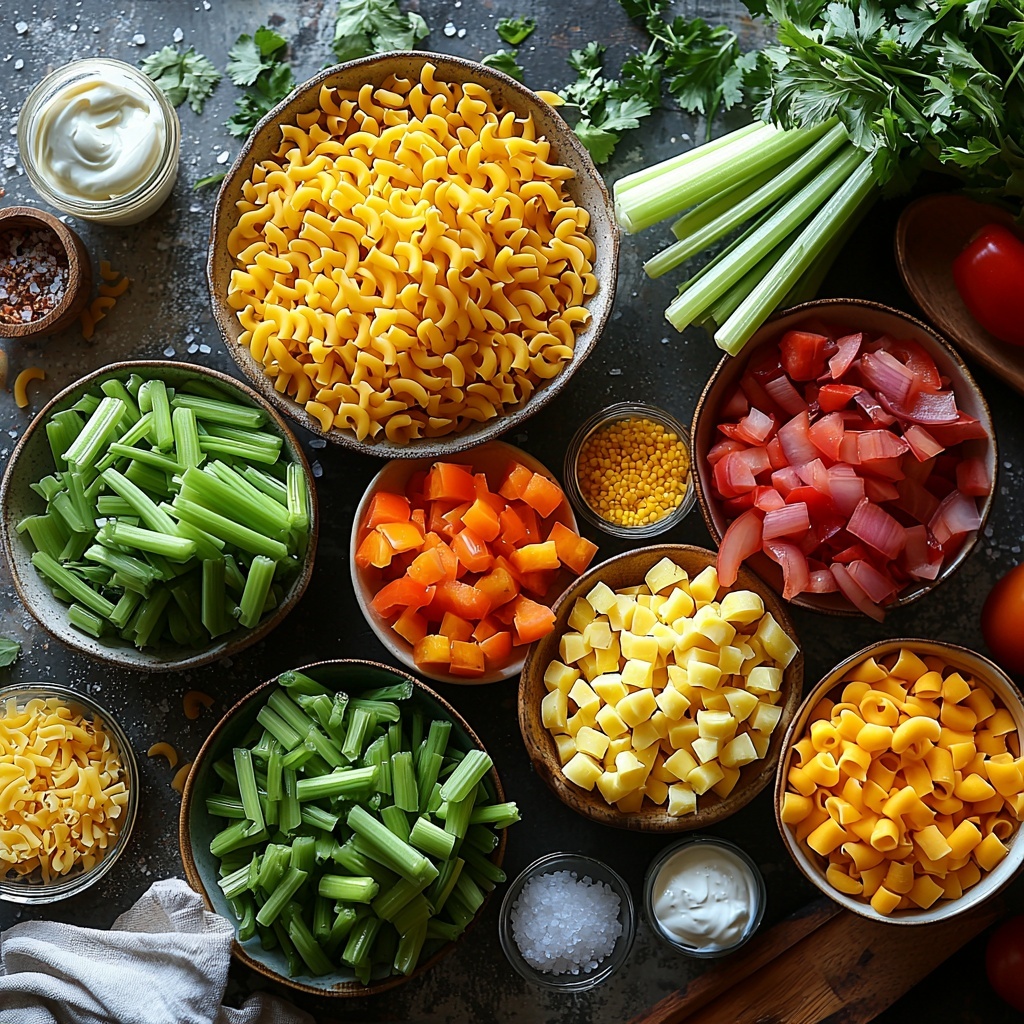 The beauty of this Gordon Ramsay Macaroni Salad Recipe lies in its simplicity and the harmony of each ingredient. Every item on this list plays an essential role, whether adding crunch, creaminess, tang, or sweetness, making your salad a masterpiece of balance and delight.