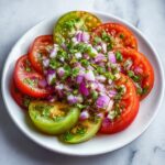 A fresh and zesty Green Tomato Salsa made with chopped green tomatoes, red onion, cilantro, jalapeño, garlic, and lime juice. This no-cook salsa is perfect as a flavorful topping for tacos, chips, or grilled meats, delivering a tangy and mildly spicy kick.