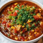 This Healthy Turkey Chili recipe is a flavorful, hearty dish packed with lean ground turkey, a variety of beans, and vibrant vegetables. Perfect for a nutritious dinner, it’s seasoned with chili powder, cumin, and oregano, simmered to meld the flavors beautifully. This crowd-pleaser is easy to prepare in one pot and can be customized with your favorite toppings like shredded cheese, sour cream, or avocado.