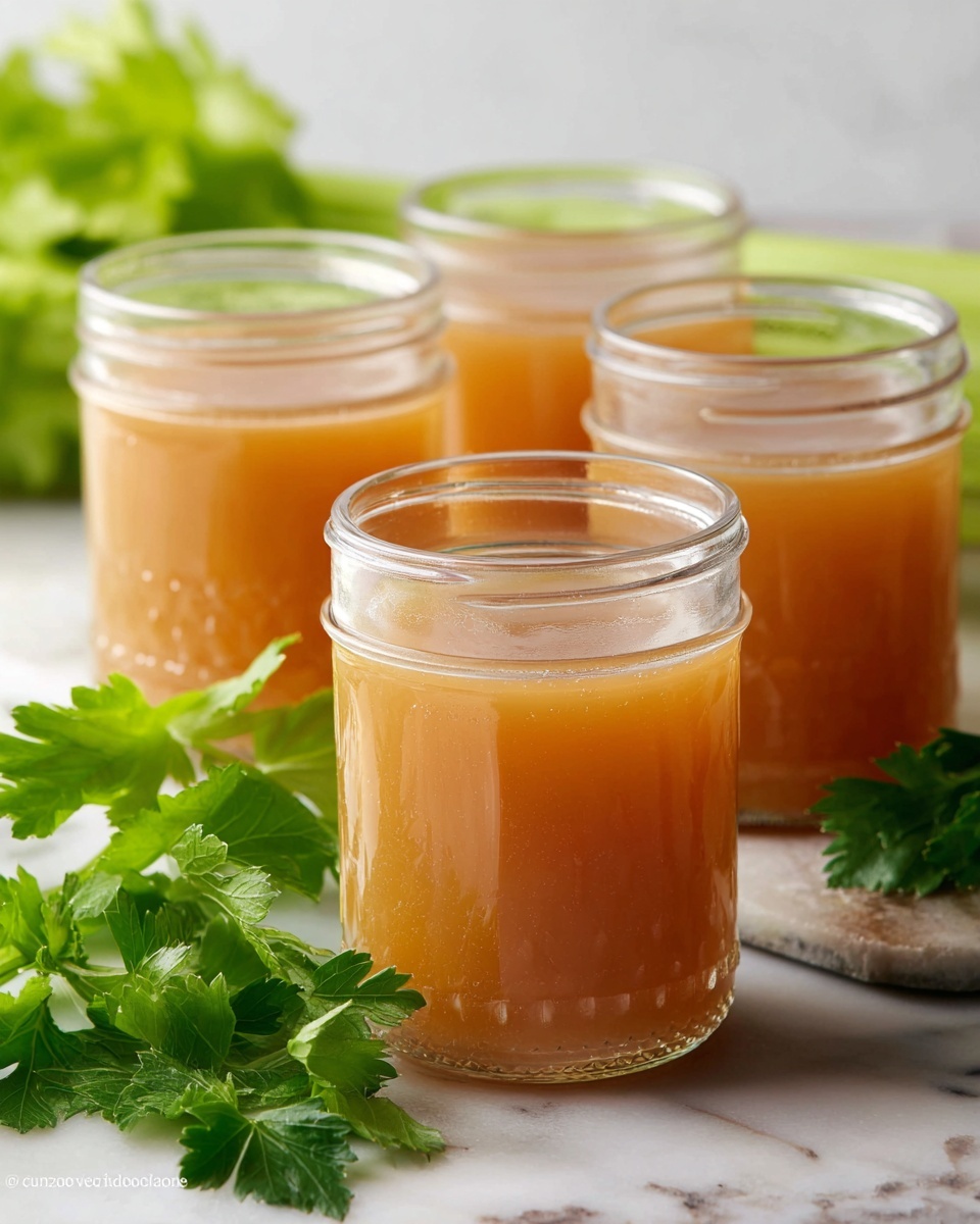 A sprinkle of freshly chopped herbs like parsley, thyme, or chives jazzes up the stock beautifully just before serving. A dash of cracked black pepper or a few drops of lemon juice can also brighten the broth’s deep flavors and add a fresh zing.