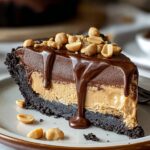 This decadent Hot Fudge Peanut Butter Pie features a rich chocolate cookie crust layered with smooth peanut butter cream cheese filling, topped with luscious hot fudge and fluffy whipped cream. Perfectly chilled and garnished with peanuts or peanut butter cups, this no-bake dessert is creamy, indulgent, and ideal for peanut butter and chocolate lovers.