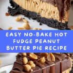 This decadent Hot Fudge Peanut Butter Pie features a rich chocolate cookie crust layered with smooth peanut butter cream cheese filling, topped with luscious hot fudge and fluffy whipped cream. Perfectly chilled and garnished with peanuts or peanut butter cups, this no-bake dessert is creamy, indulgent, and ideal for peanut butter and chocolate lovers.