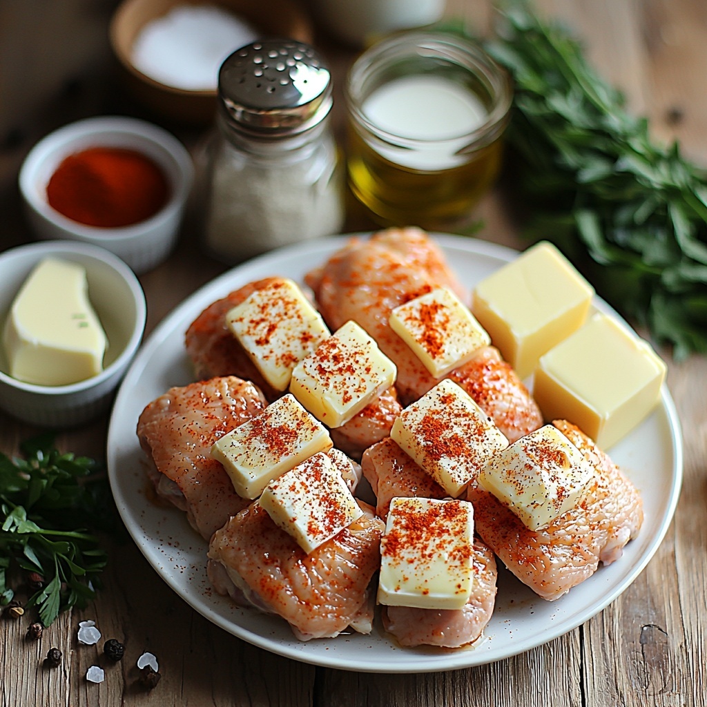 - Prepare the Chicken: Pat the chicken thighs or breasts dry with paper towels. Season both sides generously with salt, pepper, and optional paprika to enhance the flavor.